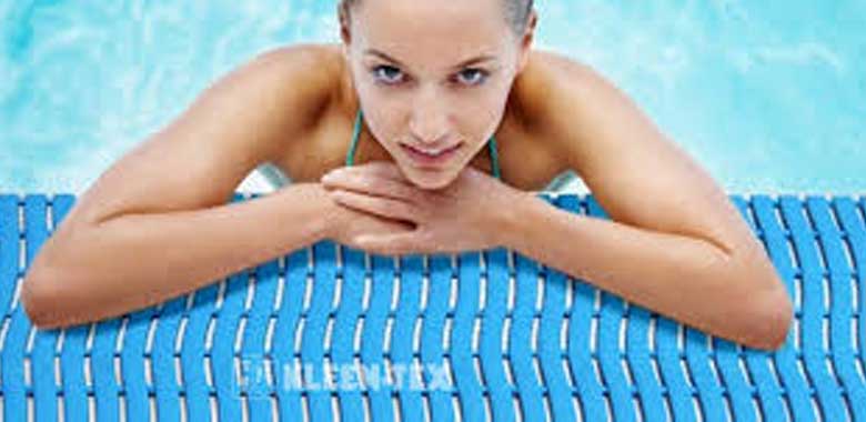 Reduzca el riesgo de resbalones en los lados de la piscina, saunas y duchas con las alfombras de seguridad Kleen-Wave.